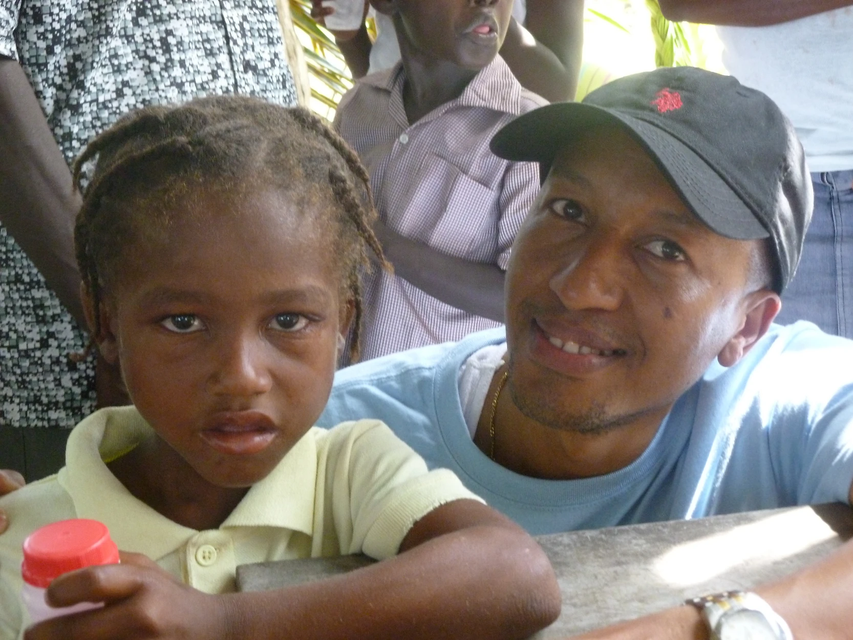 Photo of Fr. Rodlin Rodrigue with a child in Haiti.